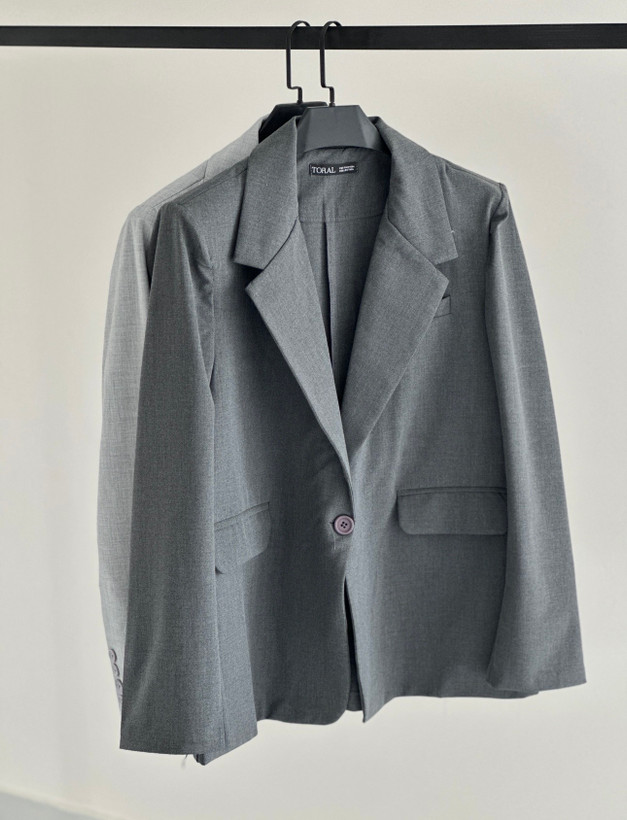 کت زنانه شیک و ترند با ایستایی فوقالعاده و پارچه باکیفیت، مناسب استایل رسمی، مجلسی و روزمره. طراحی مینیمال و رنگ خاص که بهراحتی با انواع استایل ست میشود